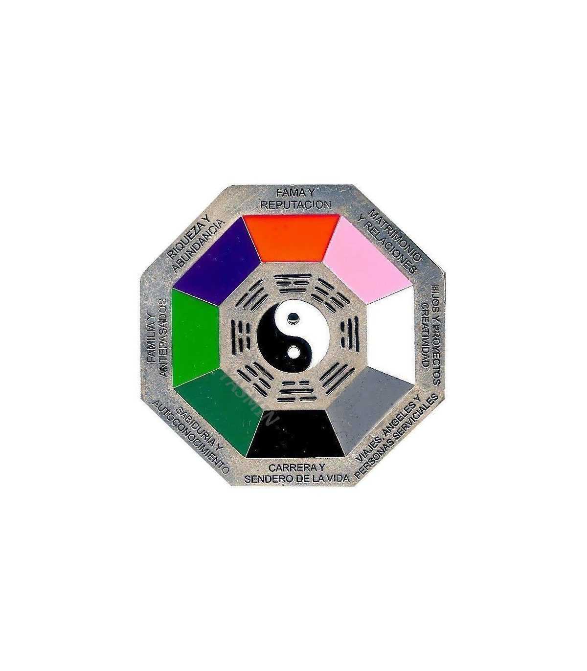 Medallón Bagua del Feng Shui. Es un mapa energético basado en los ocho trigramas del I Ching, relacionando las posibles combinaciones de la energía Ying - Yang.