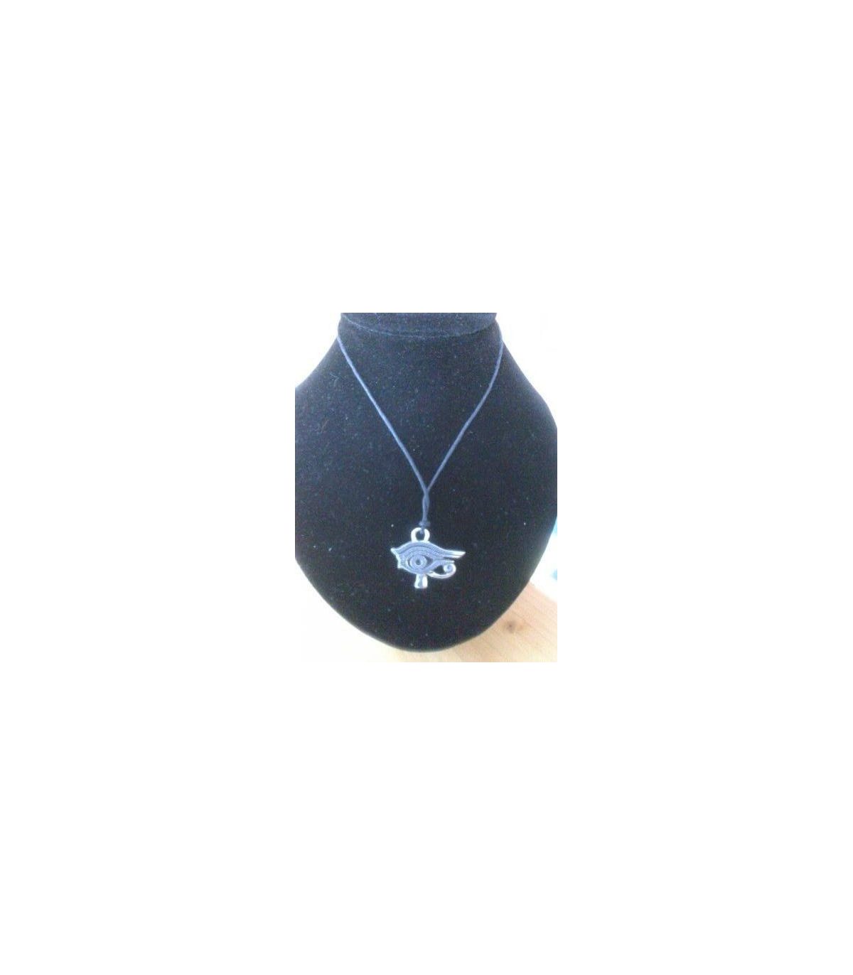 Colgante OJO DE HORUS, realizado en Zamak (aleación de zinc en un 85 %,aluminio, magnesio y cobre), recubierto con cobre y plata griega.