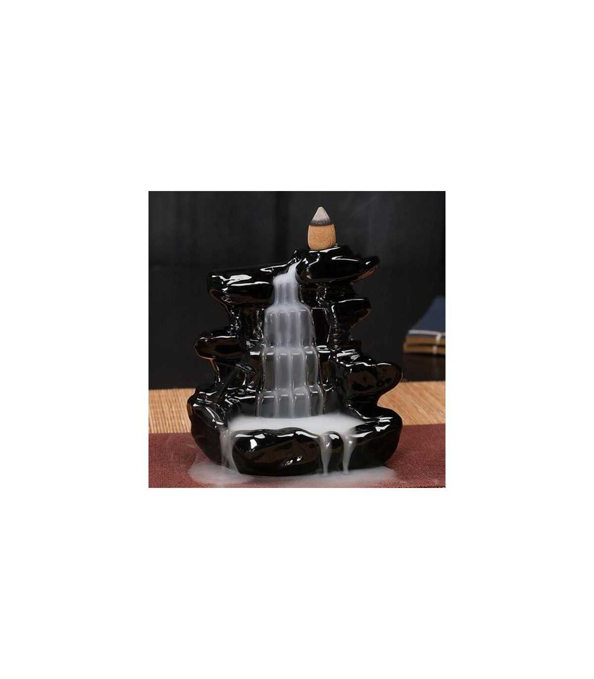 Cascade censer, special for reflux type incense cones. A smoke fountain that will decorate any room, in addition to using cones of aroma and recognized quality such as those of the GOLOKA brand, thus the effect is double, decorative and aromatic. Size: 9x7x10 cms.