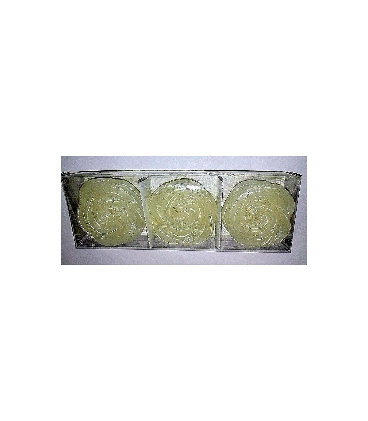 Vela flotante modelo flor, en pack de 3 ud. En color blanco, rojo, oro y plata.
