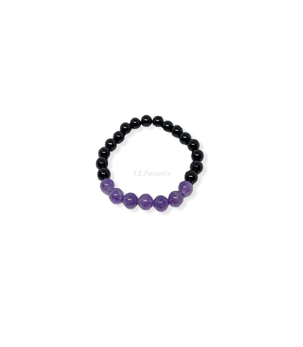 Black obsidian and amethyst bracelet, in 8 mm ball. The combination of two stones, each with very particular properties.
