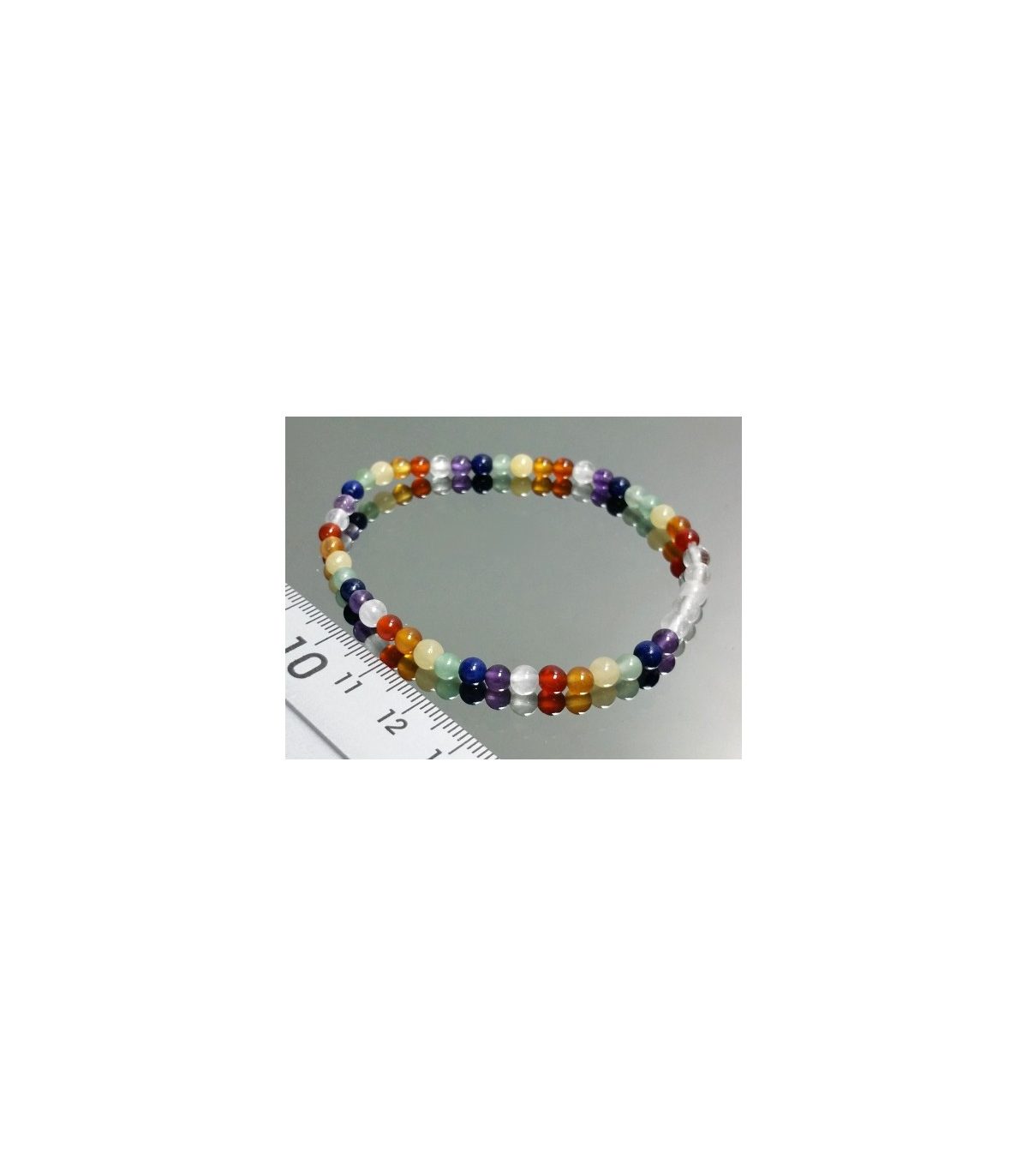 4 mm ball bracelet with stones corresponding to the 7 chakras. Elastic adjustable.