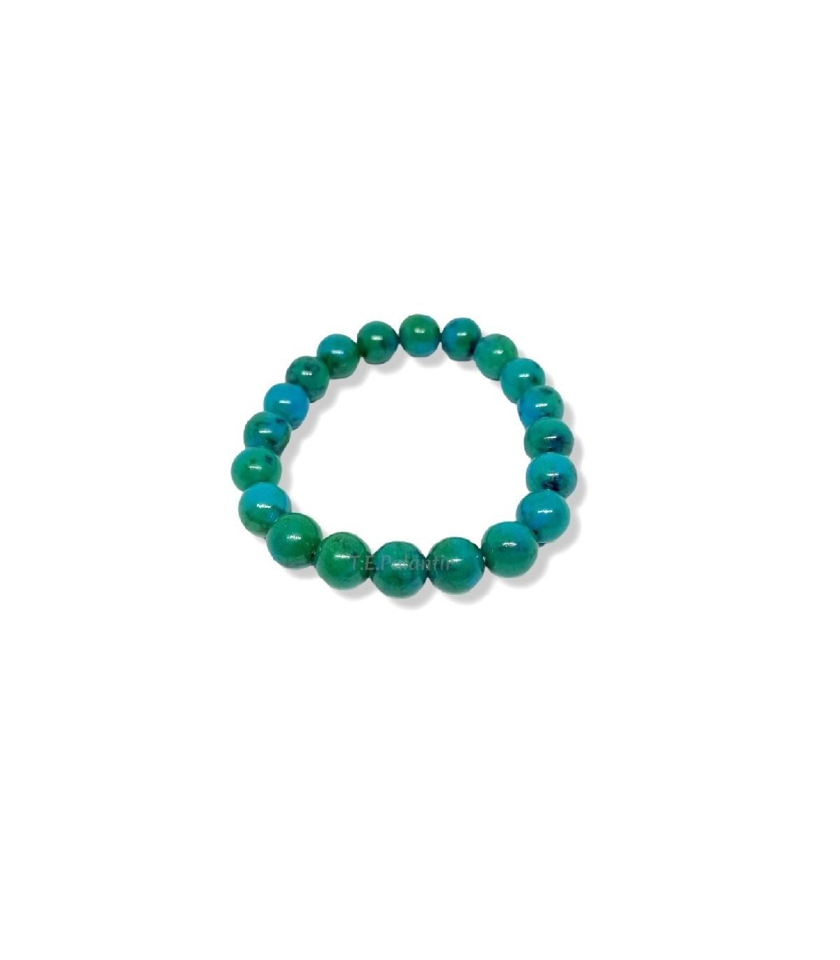Enhanced chrysocolla bracelet, made up of 6, 8 or 10 mm balls. diameter to choose. Crimped with elastic silicone thread to make it adaptable to any wrist size.