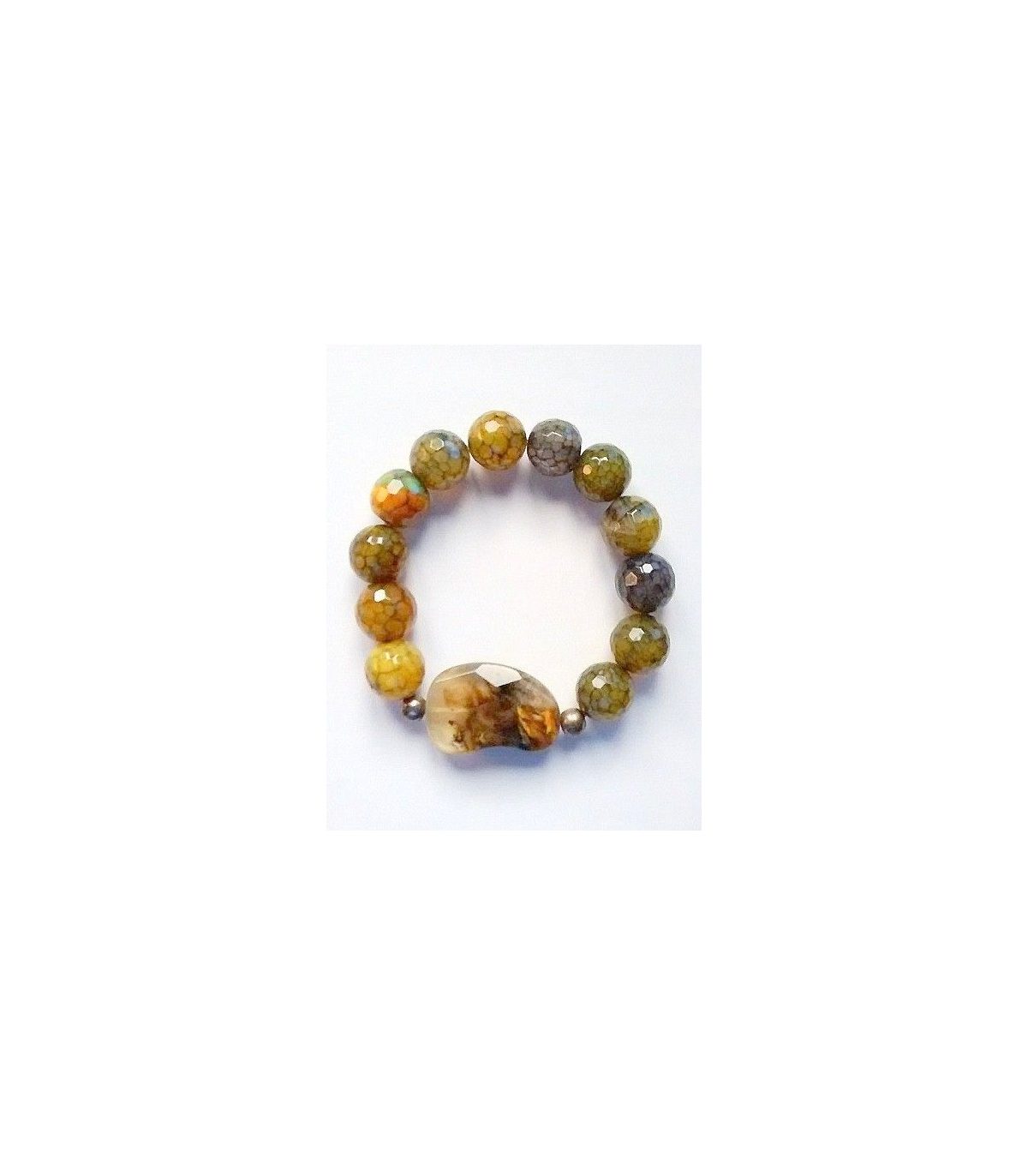 Elastic Bracelet Made With Balls Of 12 Mm. Of Agate Crackeada Green. It Consists Of 12 Balls And A Central Piece Of Agate Forms Irregular Of 30X20 Mm.