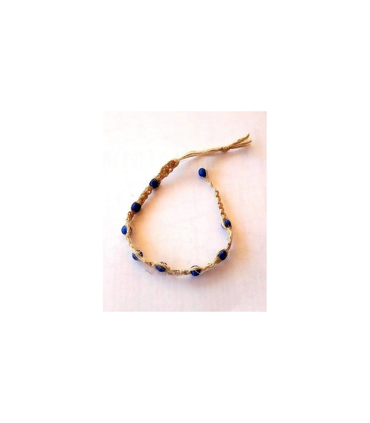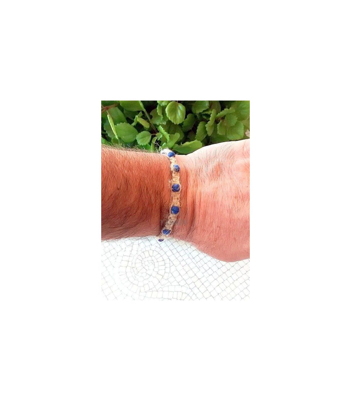 Bracelet Unisex Of Braided Natural Hemp Type Macramé With Balls Of Howlite Blue Colour Of 4 Mm. Of Diameter. Size Open Bracelet: 18 Cms. Aprox.