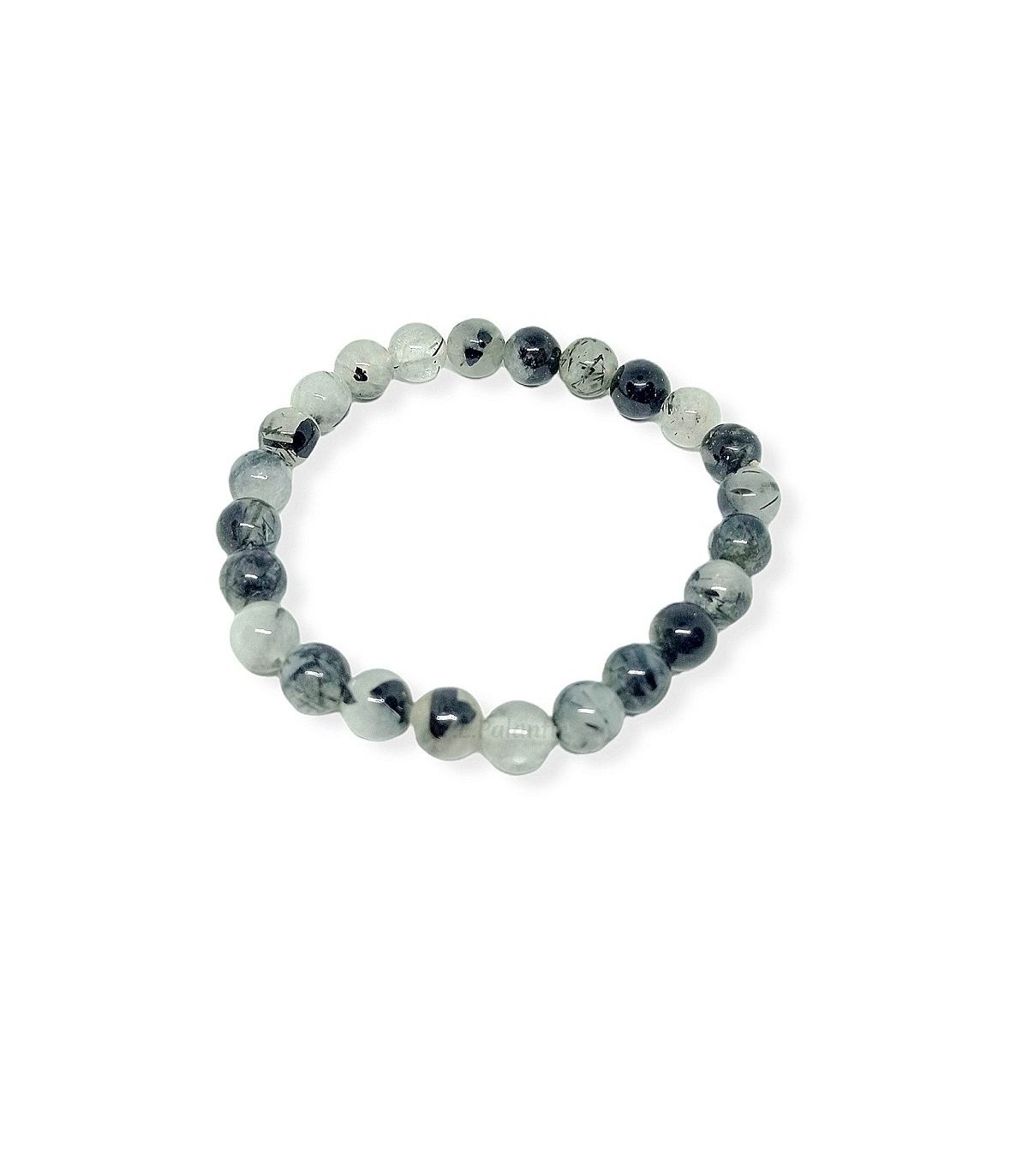 Pulsera bola lisa 8 mm. de cuarzo turmalinado. Elástica adaptable.