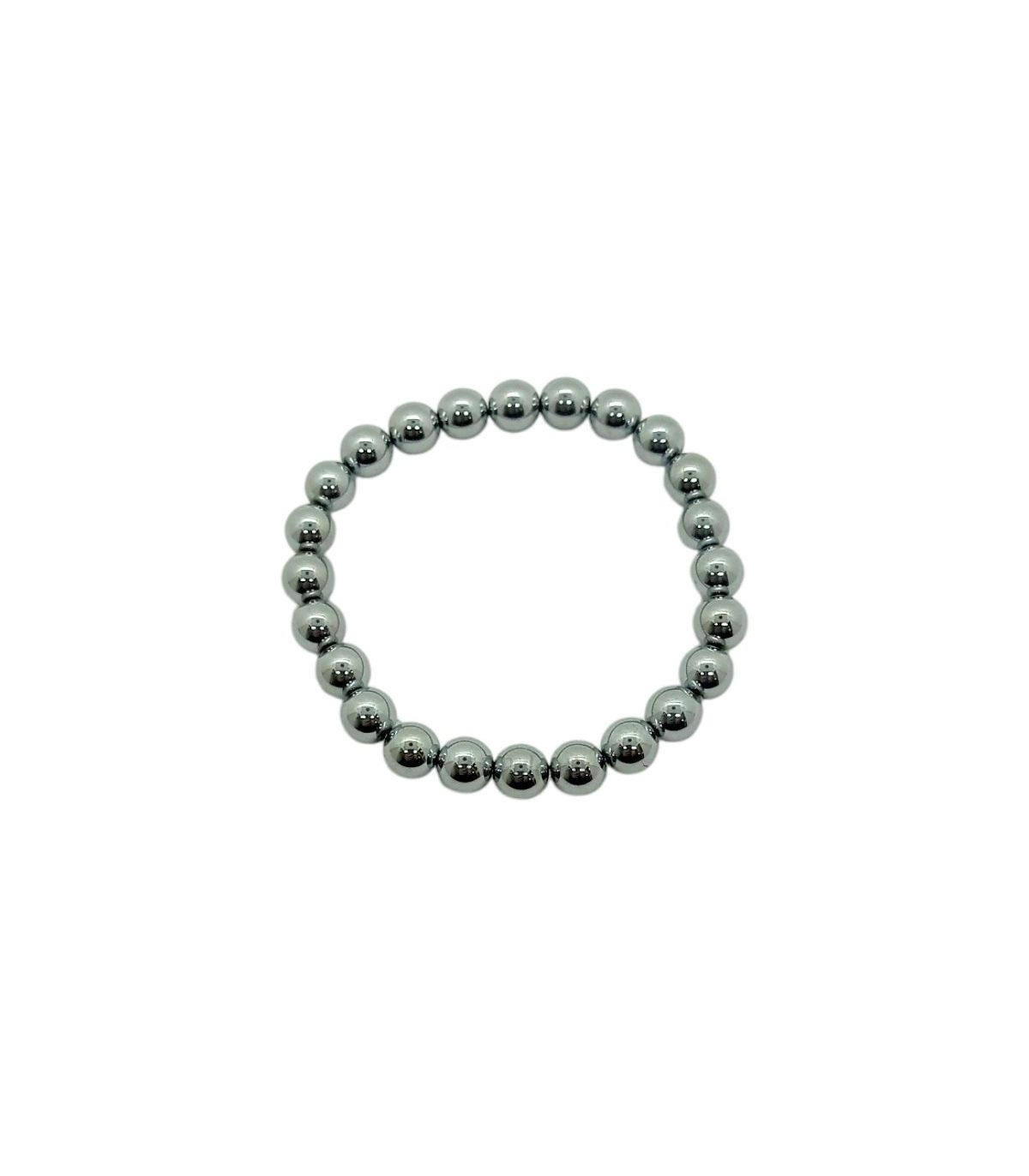 Elastic terahertz bracelet, in 8 mm or 6 mm ball to choose from. Terahertz is a shiny metallic-looking stone synthesized in a laboratory. Its composition is mainly titanium and silicon and it was discovered in Japan when they were looking for a remedy against the radiation received by the atomic bomb.