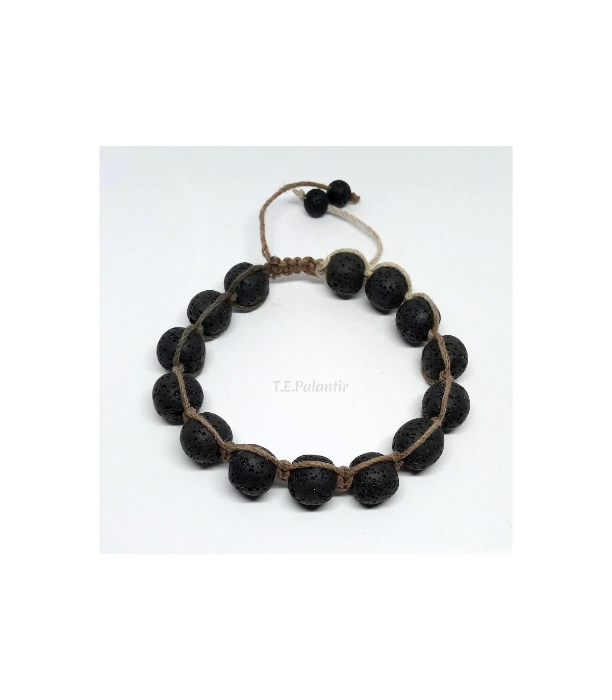 Shamballa bracelet for men in volcanic lava made with gray hemp thread in three shades. Lava beads are large (12mm).