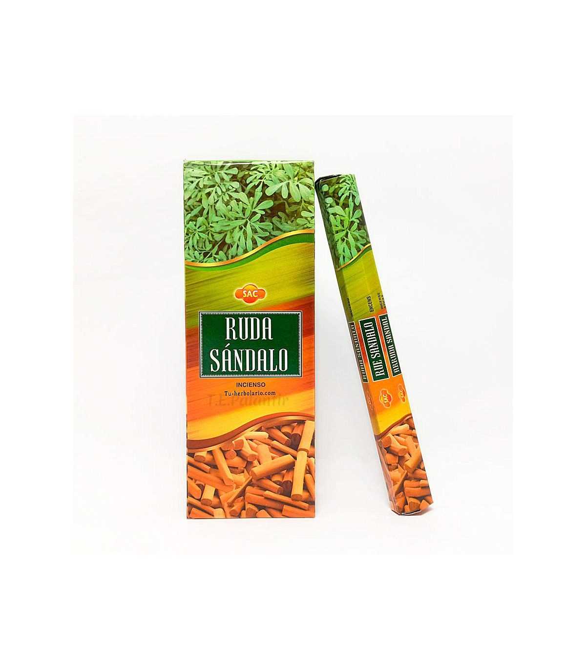 Incense of rue and sandalwood SAC. The union of the properties of rue and sandalwood provides us with an energetic cleansing and an unmistakable aroma. 20 sticks box.