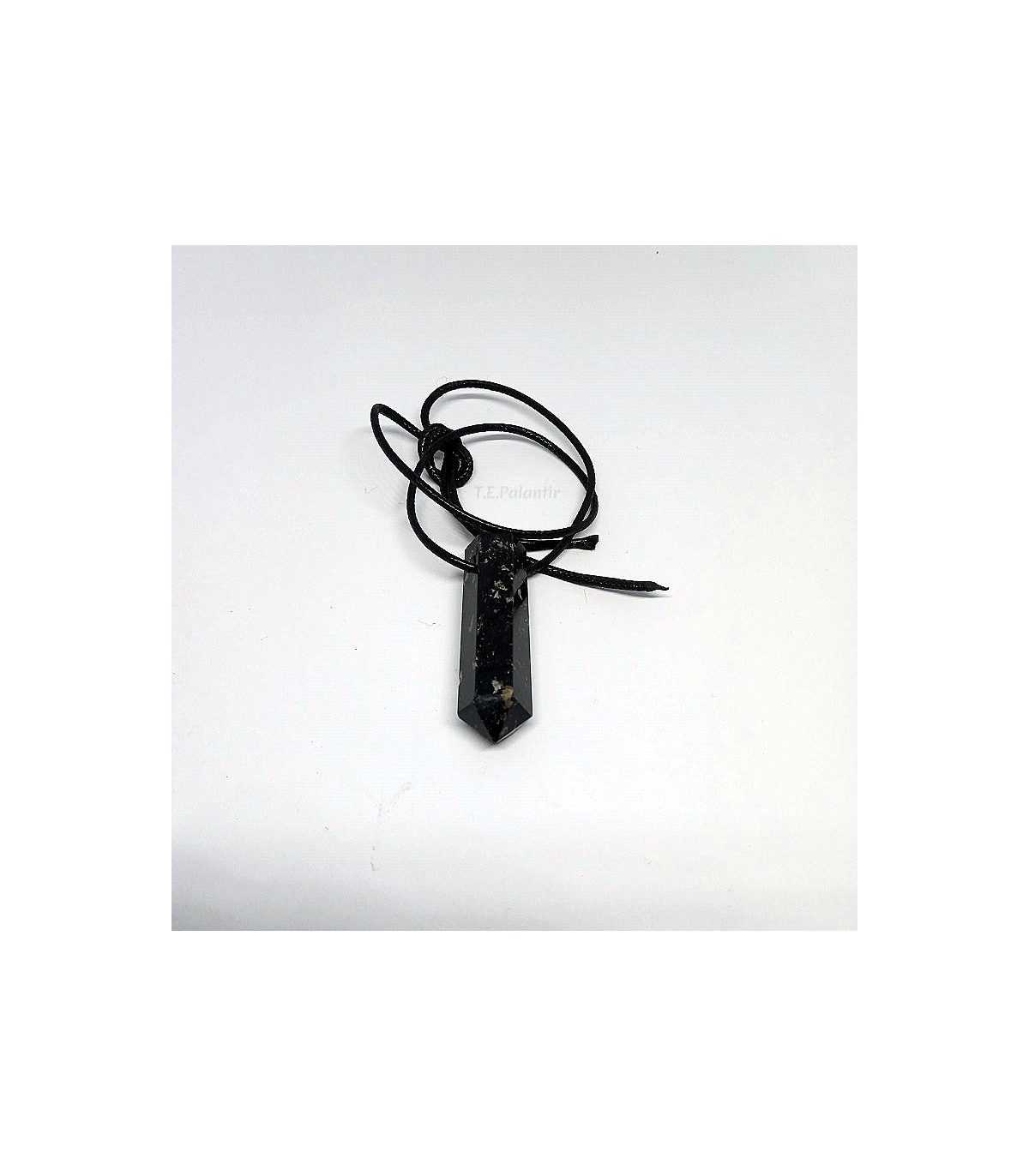 Black tourmaline pendant, pointed hexagonal shape. It is what is known as a generator, since these hexagonal pointed shapes have the ability to generate force and radiate it with great intensity. Tip size: 4x1 cms. approx. Delivered with cotton cord.