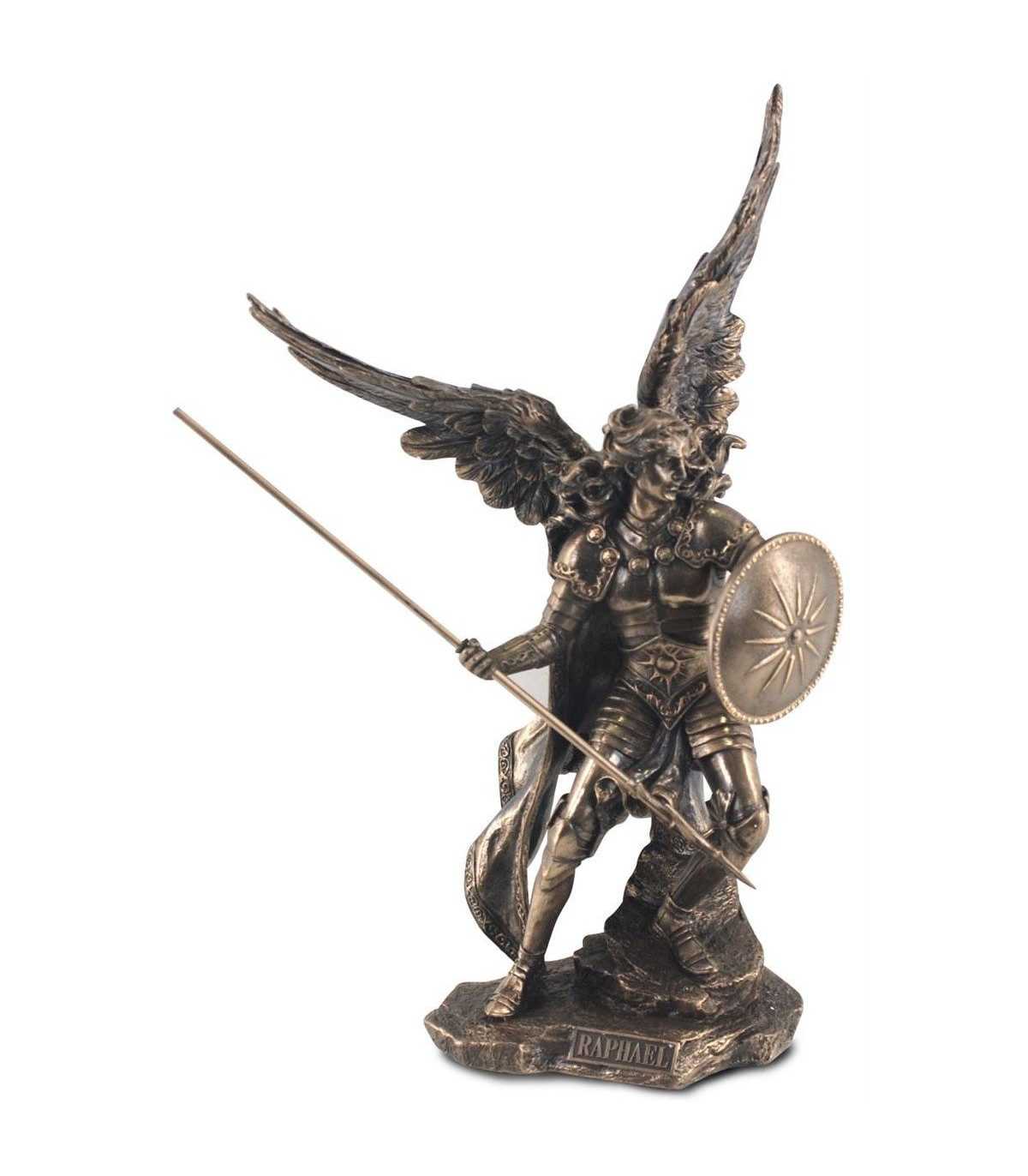 Figura del Arcángel San Rafael 37 cm. Fabricada en resina con acabado en bronce.