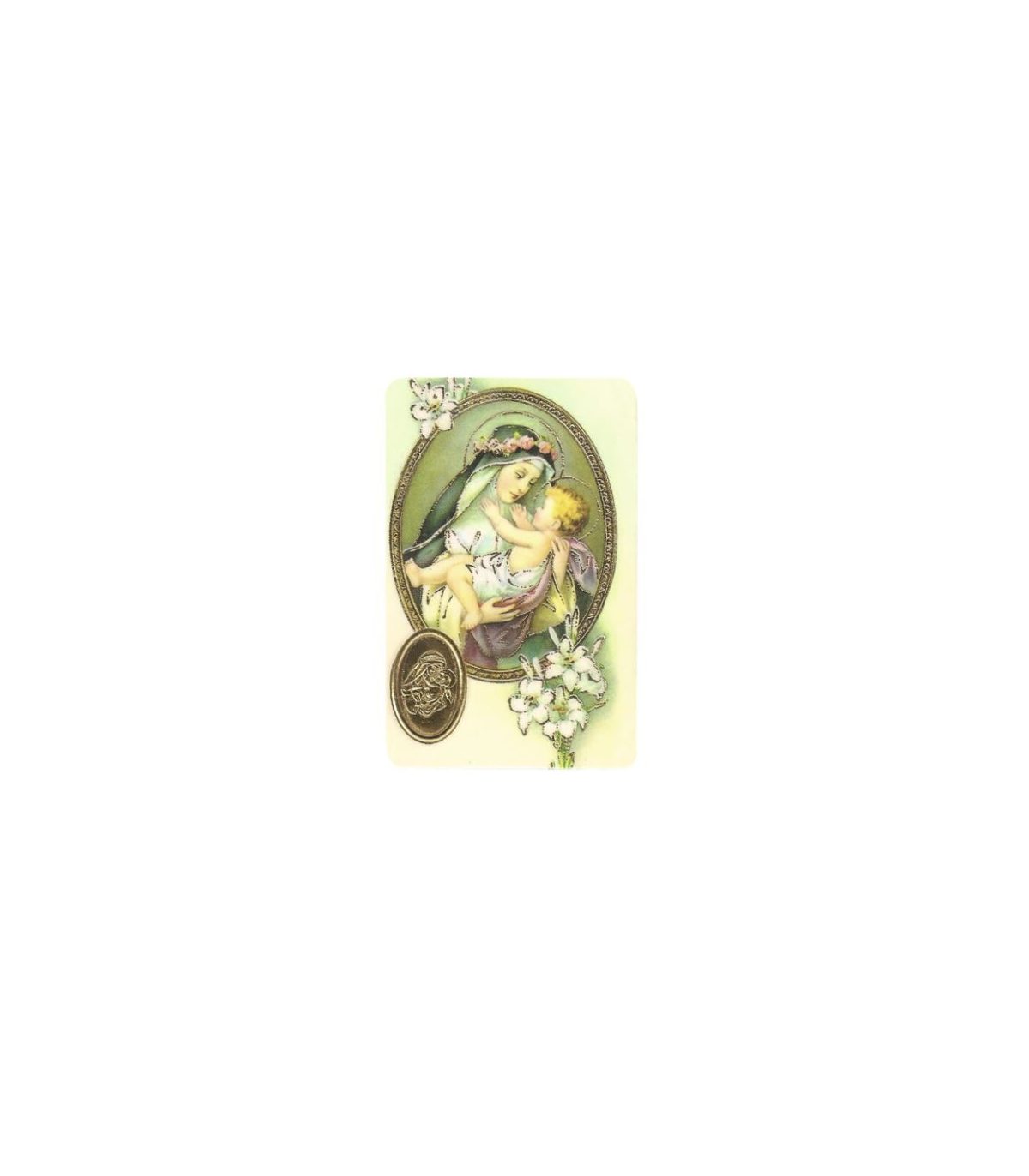 Print with medal of St. Rose of Lima. Includes prayer on the reverse. Size: 85x54 mm.