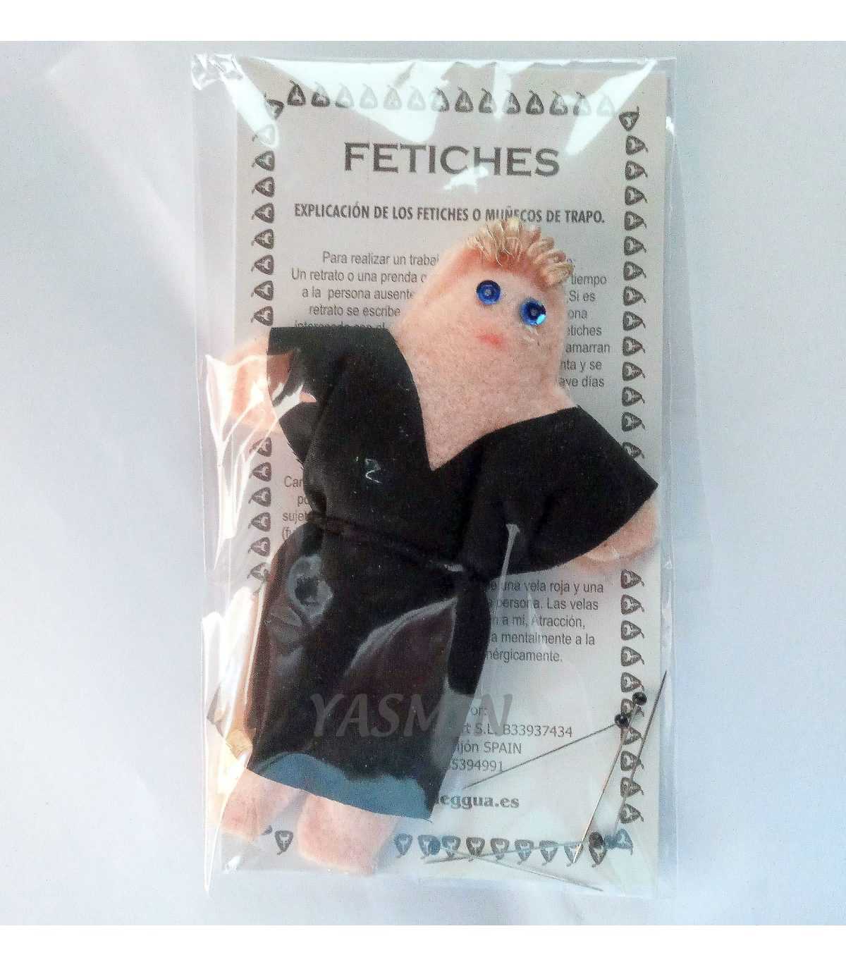 Voodoo fetish woman doll fabric black color. Includes 5 black head pins.Fetish size: 13 cms. approx.