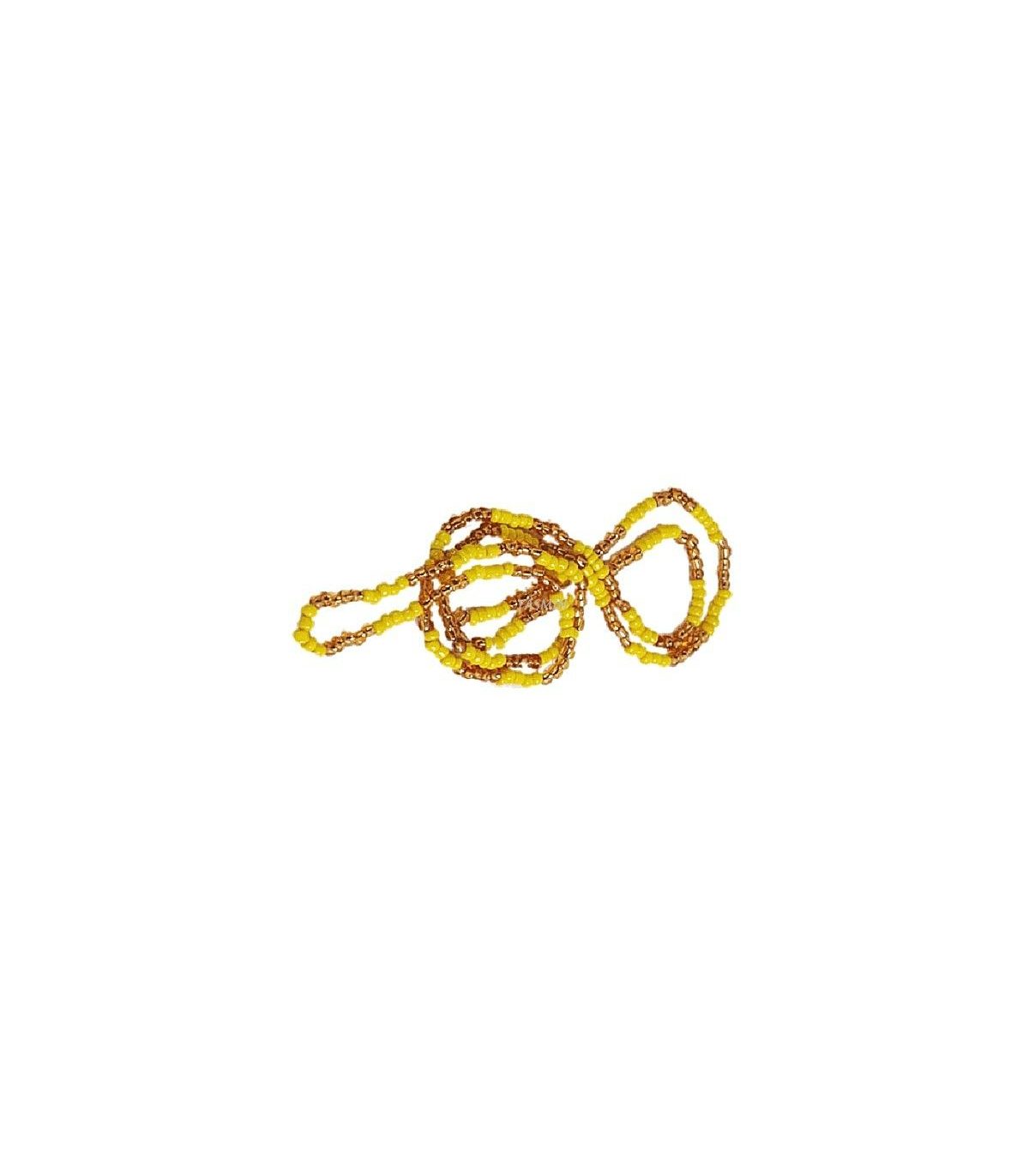 Collar de santería dedicado a Oshún con sus colores correspondientes. Está formado por cuentas amarillas y ámbar, y han de estar colocadas en múltiplos de 5.