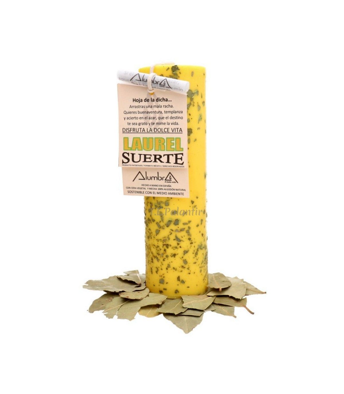 A handmade soy wax candle with laurel, to attract luck and for destiny to bring us positive things.