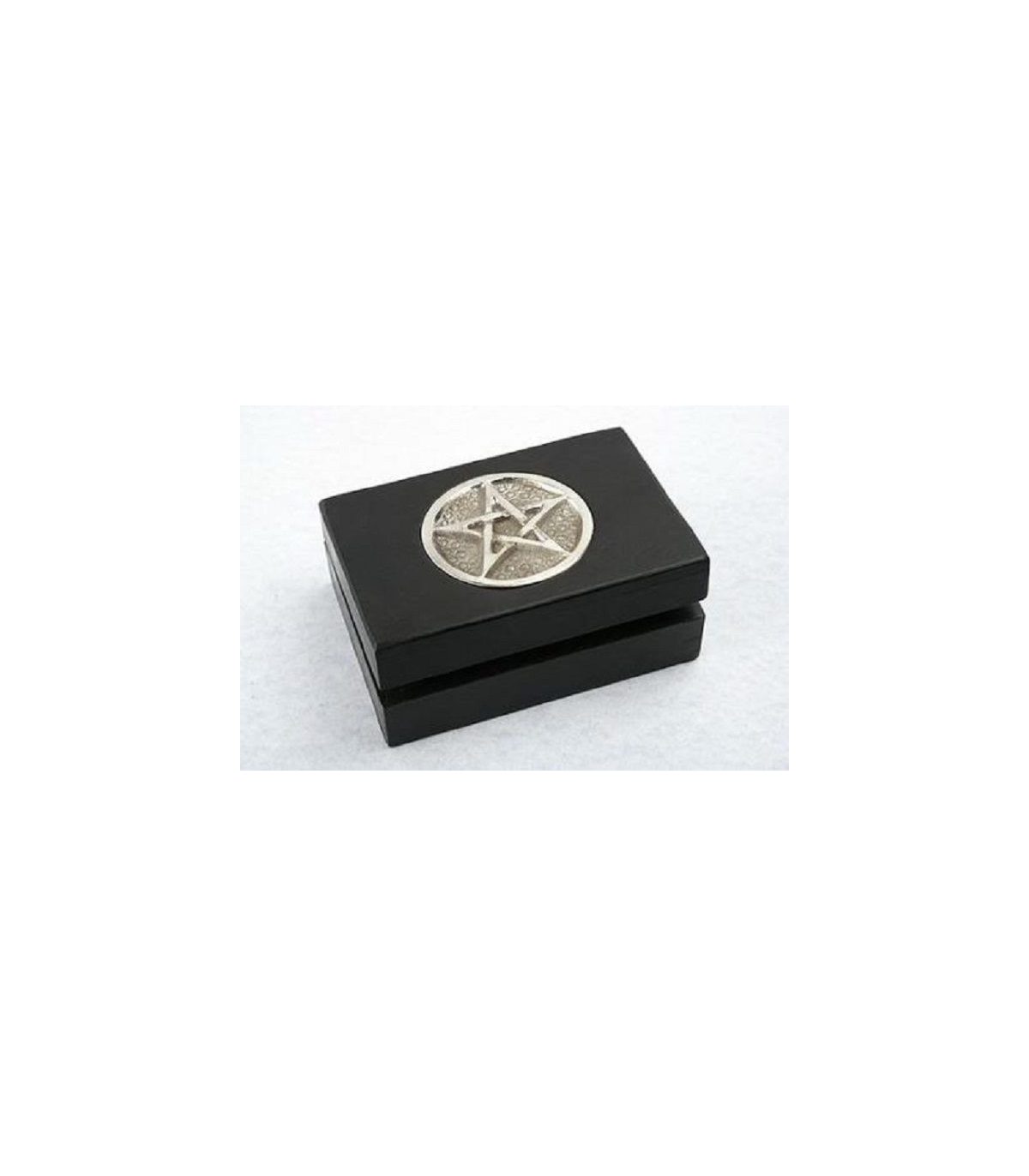 Black wooden box, with silver pentagram. Size: 15x10x7 cm.